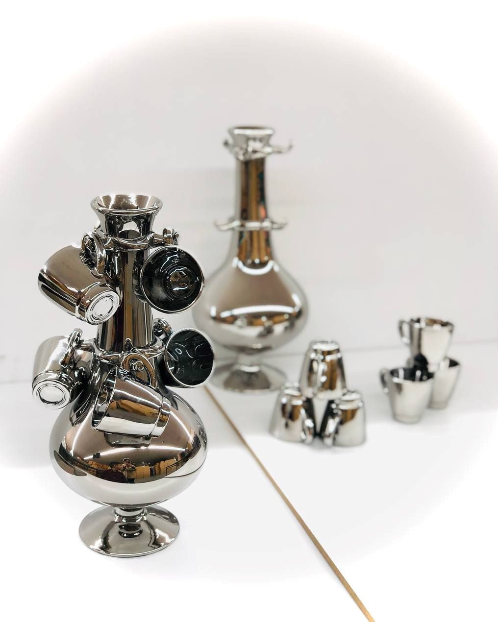 آجیل خوری چوب گردو با پایه ی آلومینیومی آبکاری شده آنتیک