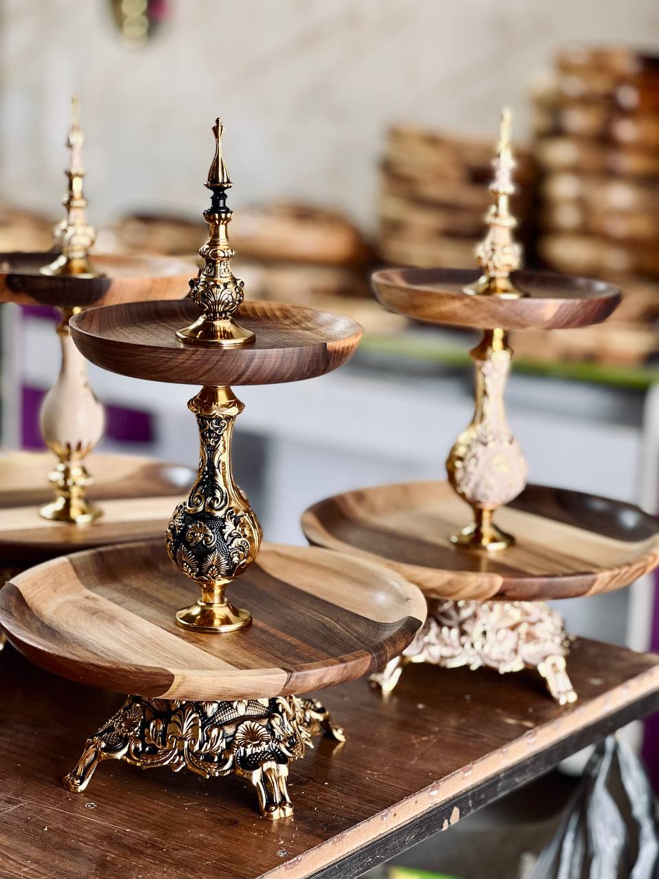 آجیلخوری چوب گردو با پایه آلومینیومی آبکاریشده؛ تلفیقی از اصالت و مدرنیته