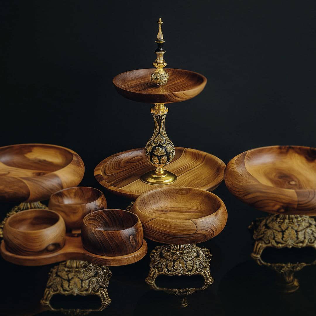 آجیلخوری ۵ پارچه چوب گردو؛ ترکیبی از اصالت، زیبایی و دوام