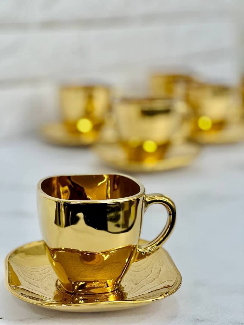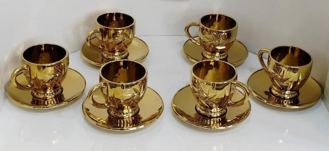 ۶ لیوان طلایی و پارچ شکیل طلایی