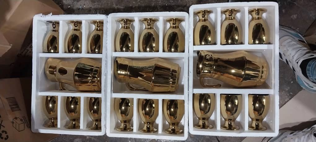 این سرویس شیک در رنگبندیهای متنوعی همچون آبی، سبز، قرمز، طلایی و فیروزهای تولید میشود تا با هر نوع دکور و سلیقهای هماهنگ باشد. پارچ زیبا با دهانهی مناسب و دستهی ارگونومیک در کنار لیوانهای همطرح و هماهنگ، جلوهای منظم و لوکس به میز پذیرایی میدهد.