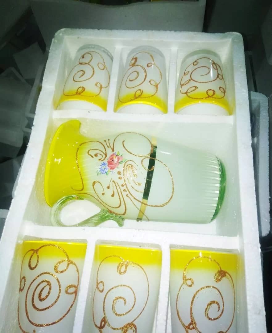 ست هفت پارچه ی پارچ و لیوان در رنگ بندی های متنوع